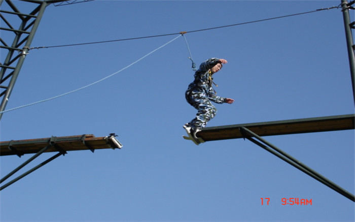 拓展培訓(xùn)是一項(xiàng)能夠體驗(yàn)朋友之間、同事之間的充分體現(xiàn)溝通能力、團(tuán)結(jié)合作的一種團(tuán)體運(yùn)動。拓展的高空類里面又包含了很多小項(xiàng)目,(如:跳出真我、高空平衡木、攀巖、巨人梯、斷橋、高低V等)簡單的跟您介紹我們一兩個高空項(xiàng)目的一個操作流程和這個項(xiàng)目所來帶的目的。跳出真我:首先我們先組成一個小團(tuán)隊(duì),然后單個學(xué)員戴好安全頭盔、穿好安全衣,在安全繩的保護(hù)下爬上七米高的樁上向前方跳出,并抓住前方1.8米處的空中單杠;而其余的人則在下面拉緊安全繩?;蛟S你會害怕、會猶豫,但是在你跳出的那瞬間你就會覺得海闊憑魚躍,天高任鳥飛。很多時候當(dāng)面臨一份抉擇的時候,只有大膽的跳出去,才是真正的海闊天空。高空平衡木:首先我們也是組成一個小團(tuán)隊(duì),然后單個學(xué)員戴好安全頭盔、穿好安全衣,在安全繩的保護(hù)下走過距離地面七米高、長六米、直徑只有二十五厘米的獨(dú)木橋?;蛟S你平衡能力不好、或許你在上往下看是會害怕。但是這個項(xiàng)目卻能讓你挑戰(zhàn)自我,挖掘潛能。當(dāng)面前的路只有唯一選擇的時候,那就大膽的向前走。在所有項(xiàng)目培訓(xùn)期間要注意1、必須服從教練及訓(xùn)練工作人員的管理;2、有心腦血管、癲癇等疾病不適合參加培訓(xùn)的,應(yīng)在訓(xùn)前告知本單位管理人員或我公司教練;3、嚴(yán)格遵守作息時間,禁止賭博、飲酒、培訓(xùn)過程中禁止吸煙。