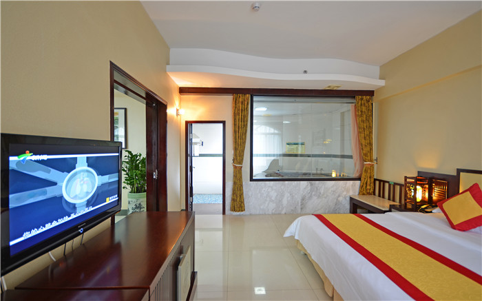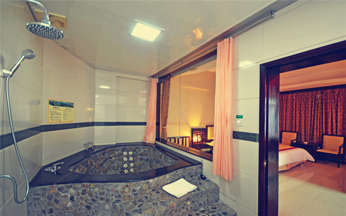 商務(wù)樓客房為于公司主樓,屬于商務(wù)型客房,層高6層,站在商務(wù)客房內(nèi)可一覽景區(qū)風(fēng)景,清晨,推開窗戶。微風(fēng)吹來,一陣清新、幽香、淡雅的泥土氣息迎面而來。商務(wù)樓設(shè)有三種房型,分別為豪華一房一廳(房間帶室內(nèi)溫泉池)、豪華雙人房(不帶室內(nèi)溫泉)、豪華三人房(不帶室內(nèi)溫泉)酒店客房豪華溫馨,配有空調(diào)、書桌、電話、液晶電視、房內(nèi)保險(xiǎn)箱、洗刷用品、淋浴設(shè)施,吹風(fēng)機(jī)、免費(fèi)桶裝水、免費(fèi)WiFi等設(shè)施,住房包含了露天無限次溫泉門票和自助早餐,健身房、水療SPA、羽毛球、乒乓球、臺(tái)球等,無限量免費(fèi)提供飲料,水果。溫泉總的有60幾個(gè)露天溫泉池。其中有養(yǎng)生區(qū)(如茉莉花池、人參池、牛奶池、酒池等)、水療SPA按摩區(qū)、高溫池等等特色溫泉池。如需詳細(xì)了解請?jiān)诰€咨詢哦。使您在度假村盡情玩樂后能夠享受溫馨的住宿。